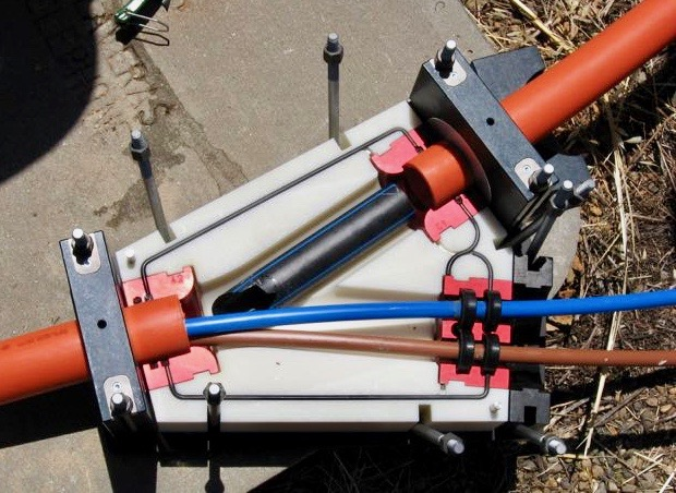 In situations where typically 2” and smaller HDPE conduit housing a single optical fiber cable are involved, one or more appropriately sized MicroDucts can be air-jetted into the occupied duct using a specialized Y-Block Adapter to isolate and seal off the current cable in the duct. Then, the additional MicroDuct(s) can be placed in the duct using compressed air and tractor type air-jetting equipment fitted with multi-groove belts to install multiple MicroDucts. When simultaneously installing more than one MicroDuct, it is important that the MicroDuct ends are free and not joined or connected together.