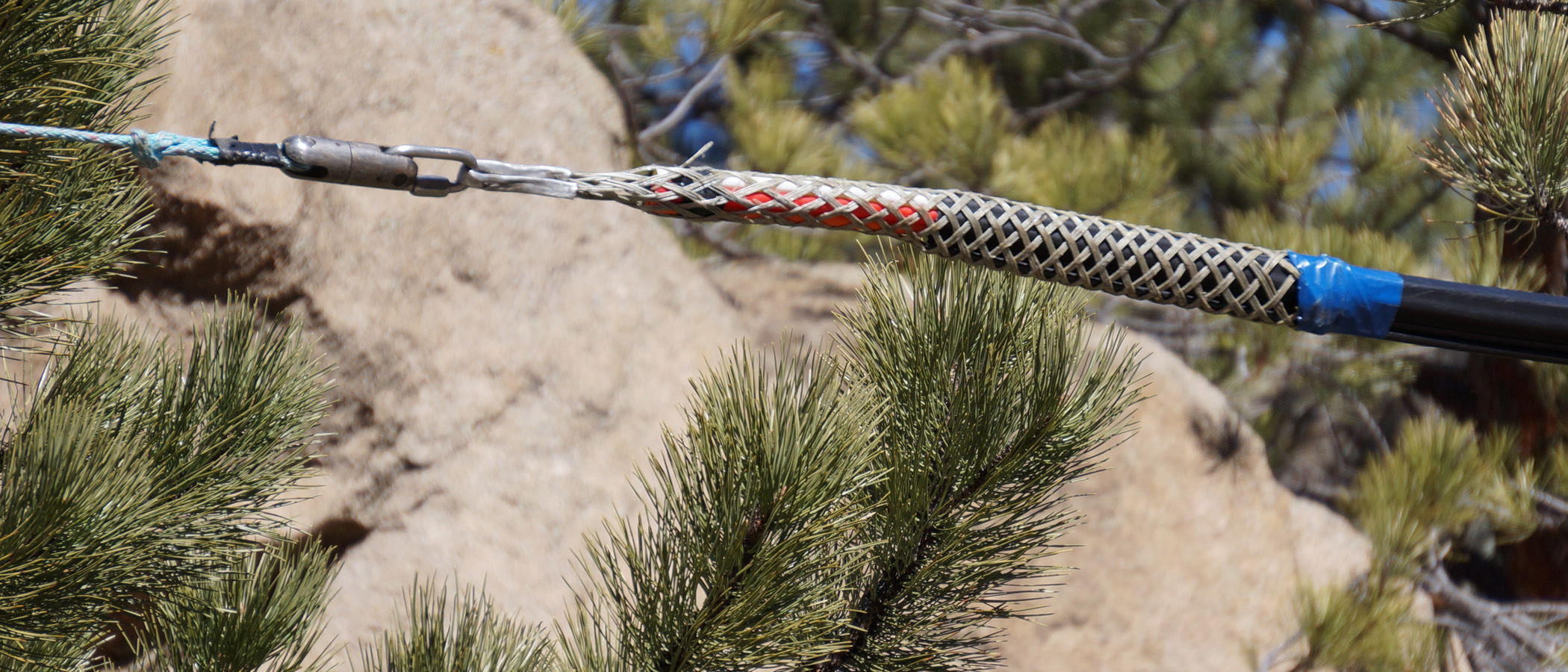 Dura-Line’s Figure-8 Self-Support Aerial duct utilizes a flooded extra high-strength (EHS) 0.25” galvanized strand for optimum tensile strength. The strand must be properly tightened to provide the proper sag profile to allow for expansion and contraction. Both the Figure-8 Self-Support Aerial conduit and non-stranded version may require the addition of wind dampers, spoilers, or weights in high-wind regions to control potential cable/duct cable dance (gallop or aeolian vibration) conditions.