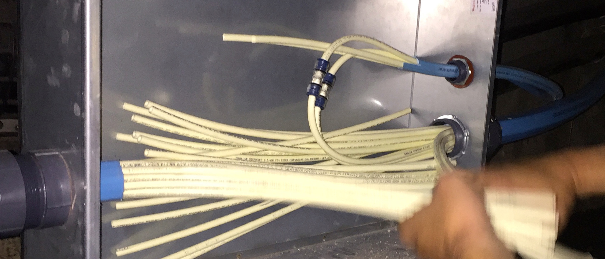 Use the proper pulling hardware and do not exceed the maximum tensile pull rating of the ducts. Use swivels – attached to each duct and the lead pull line – and wire rope slings (bridle) for maximum pulling clearance in the conduit and reduce twisting of the ducts. When placing different size ducts simultaneously, the pull tension maximum is limited to the duct with lowest published pull tension maximum. Note that when air jetting in cables, LSZH duct products may have lower than normal jetting pressure maximums due to the nature of the LSZH material.