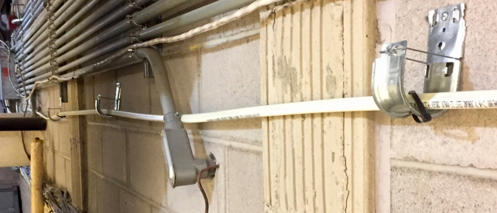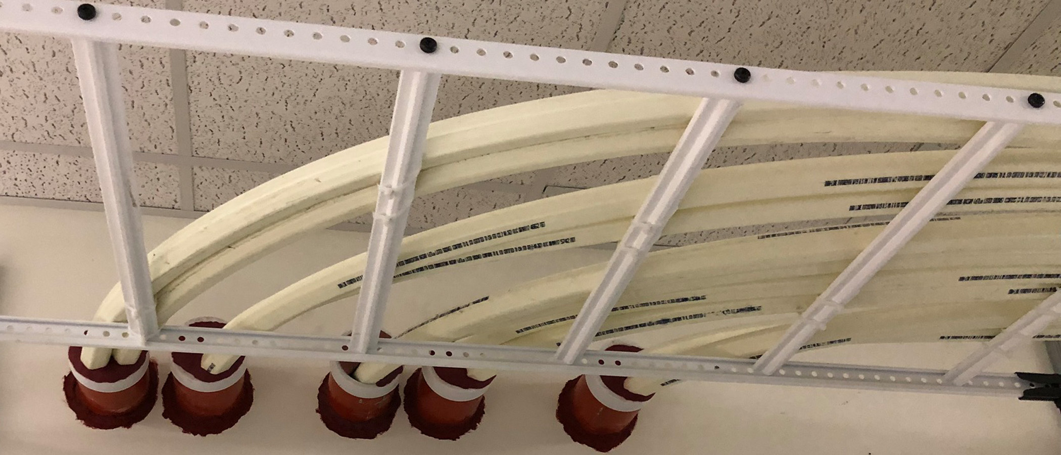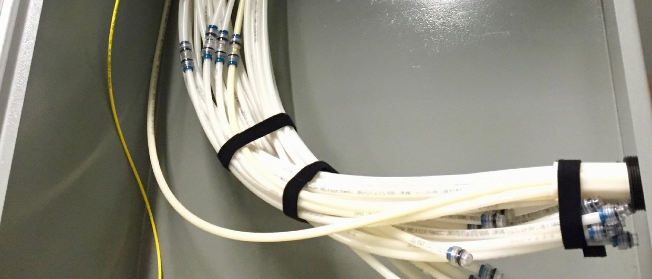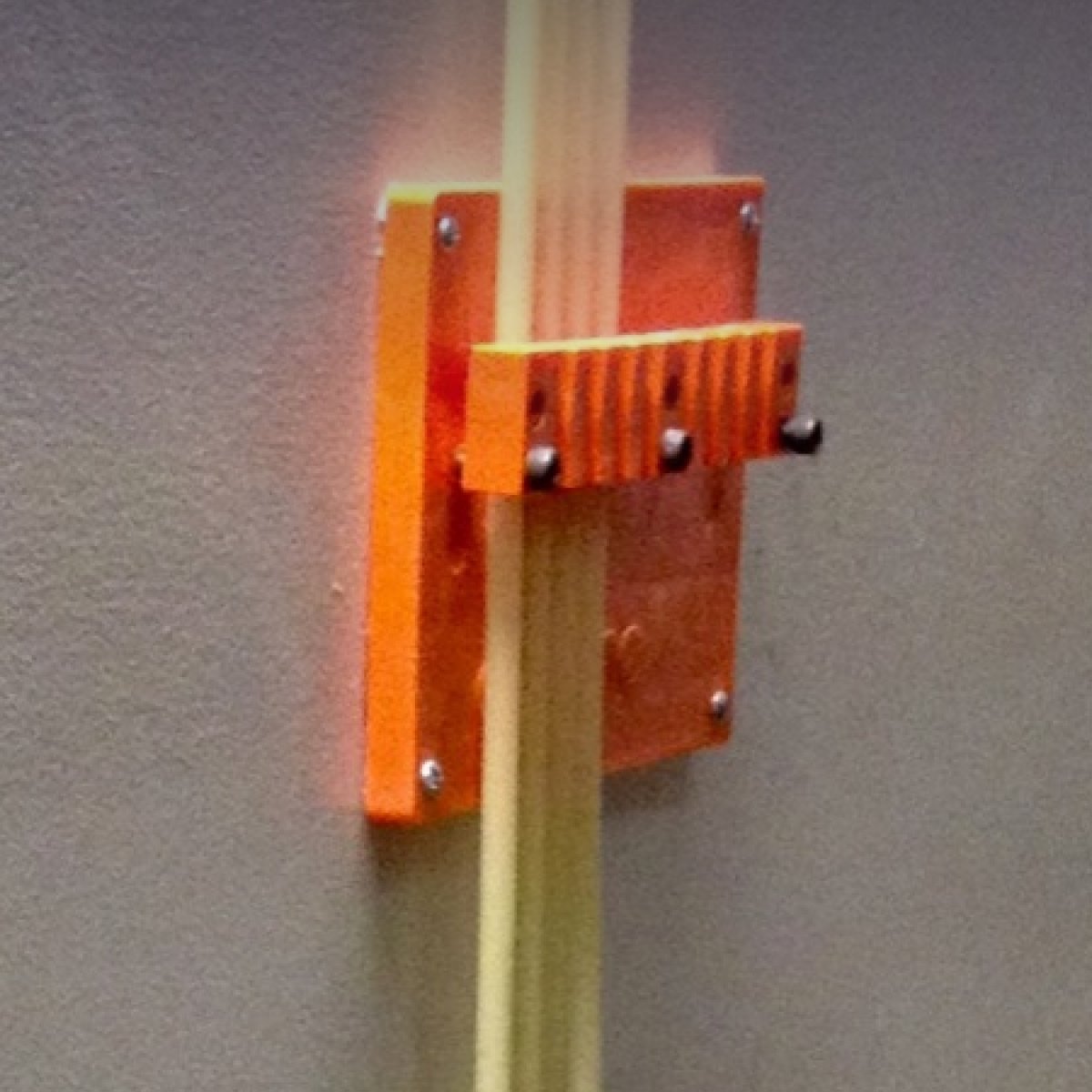 When the FuturePath jacket is removed for ease of routing the separate MicroDucts horizontally and vertically on interior walls, organizer brackets should be used to route the MicroDucts in a neat and orderly fashion. To be able make the first row of up to eight MicroDucts, be sure to install an additional bracket along with the base plate that includes one bracket. Additional brackets can then be installed for additional rows as required.